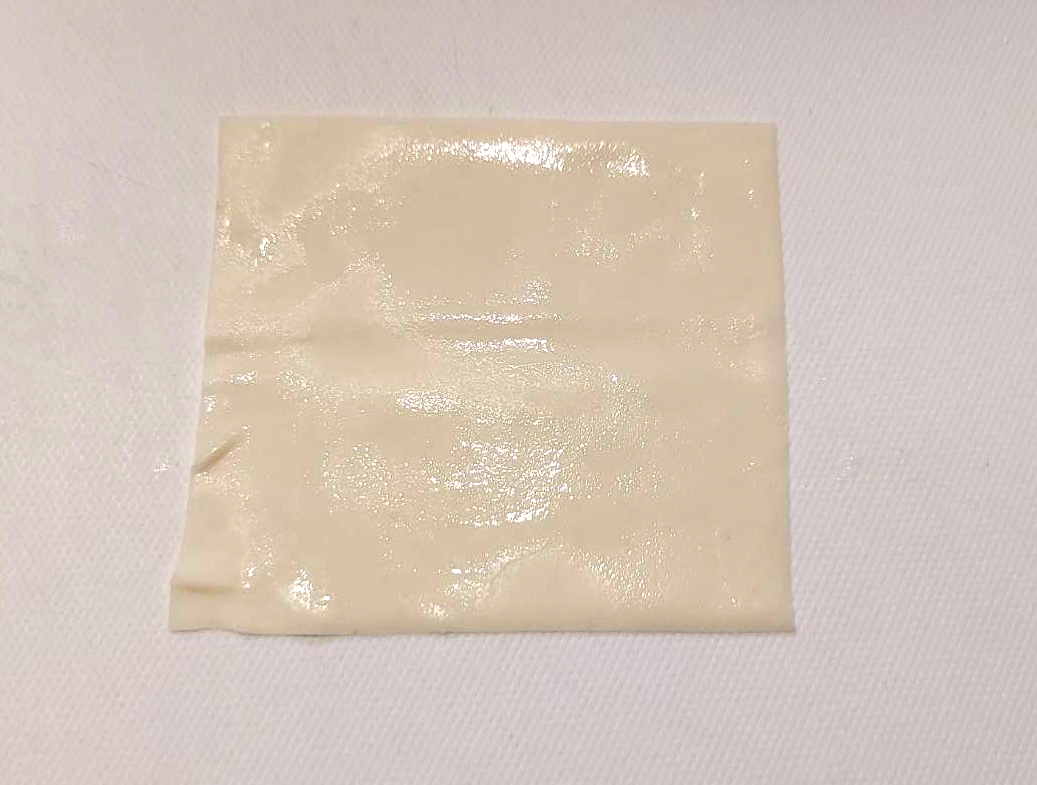半分に閉じて、手の平で空気を抜くように押さえます。